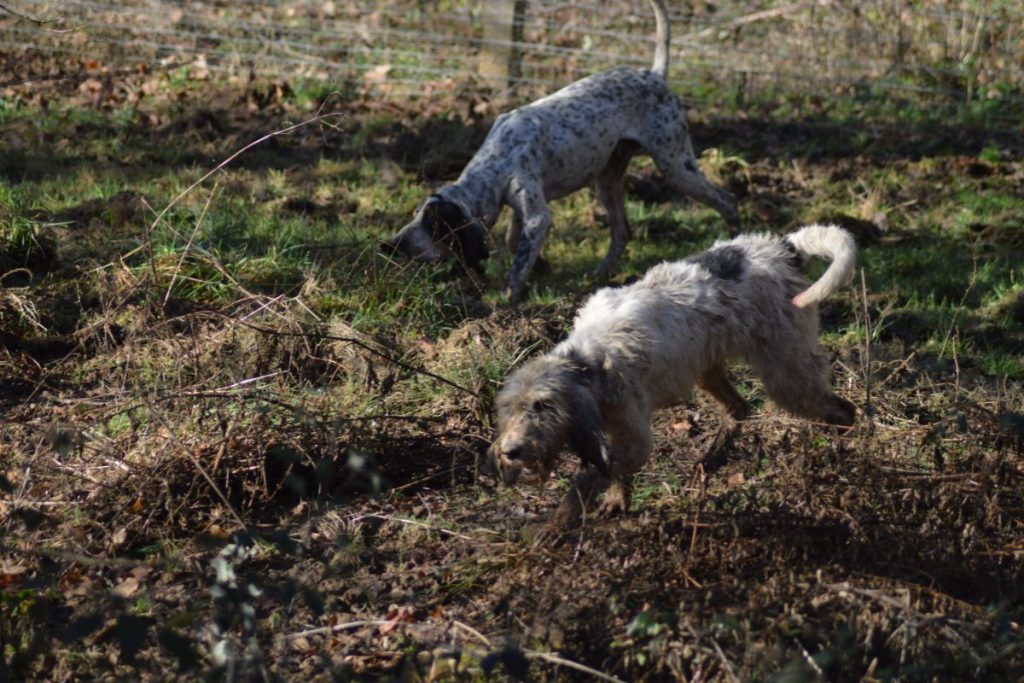 Un débourrage bien mené, c’est la base. Chez nous, on commence dans un petit parc sécurisé. L’objectif est simple : lui donner l’opportunité de lever seul. Dès qu’il est capable de suivre une voie, de lever, et d’exprimer son caractère, on passe au grand parc. Là, il apprend à tenir un sanglier au ferme, à jauger, à persévérer.